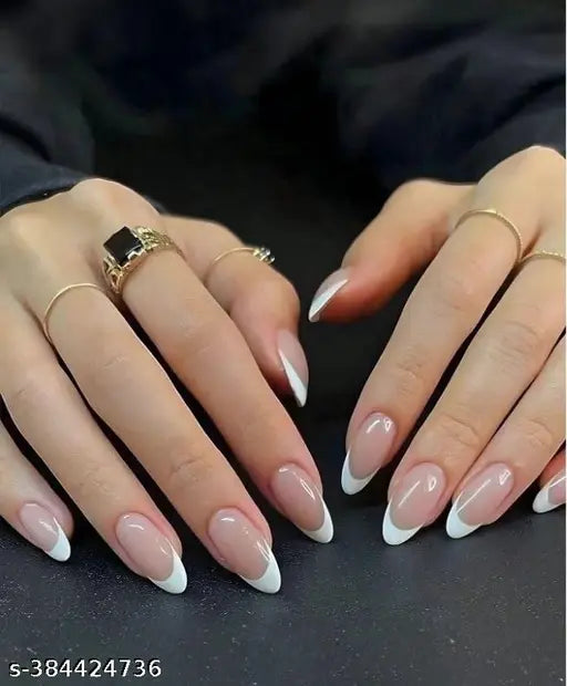 - Ombre gradient from blush to sheer white - Flattering almond shape - 24 sizes & high-quality adhesive tabs