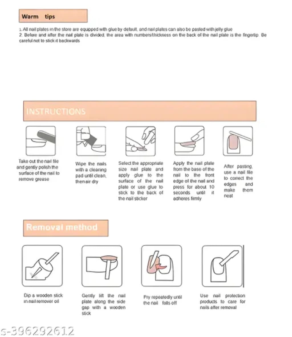 Clean your nails, choose the best-fitting size, apply our high-quality adhesive tab, press and hold for 10 seconds.